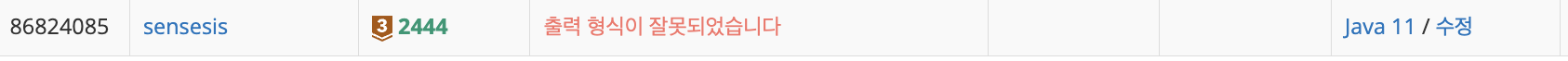 입력 형식도 맞고 출력 형식에 맞게 결과도 잘 나와서 나름 잘 풀었다고 생각했다. 하지만,,